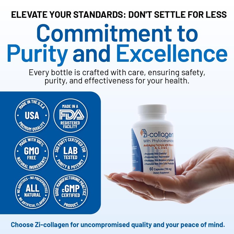 Zivere Zi-Collagen - Premium Collagen Capsules with Phytoceramides Hyaluronic Acid and Biotin - Skin Hair and Nails Advanced Anti Aging Supplement - Multivitamin for Women & Men - 60 Pills