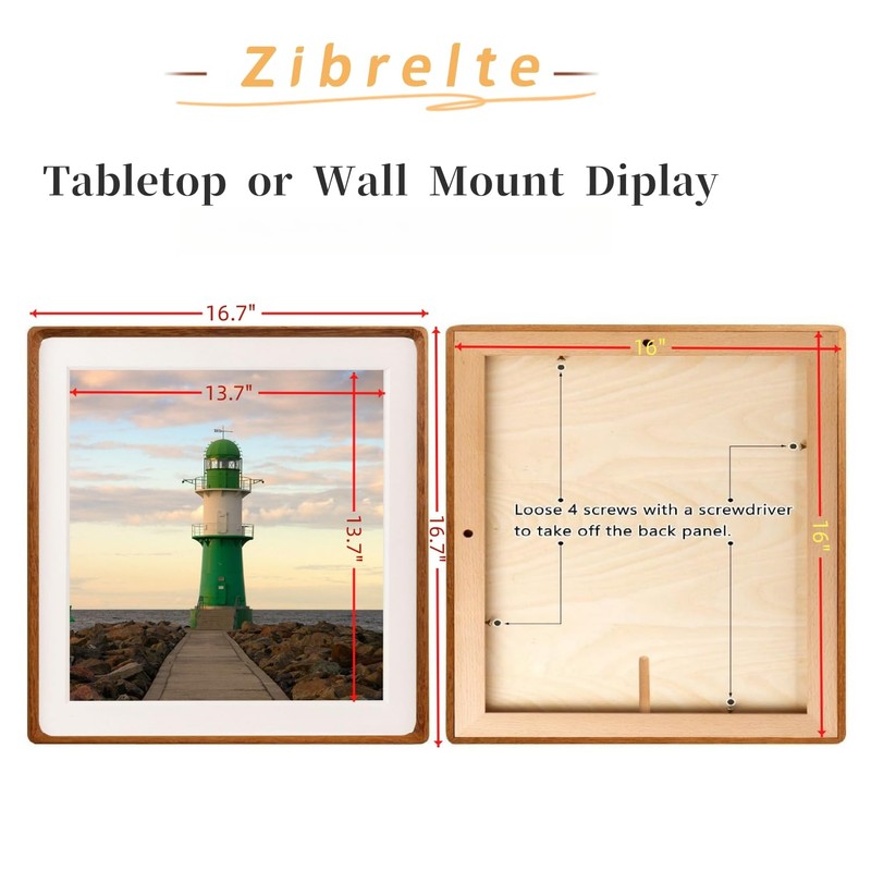 - Versatile Display Options: Matted to display a 14"x14" picture with mat or 16"x16" photo without mat. Overall size 16.6 x 16.6 inches, mat opening size 13.8" x 13.8 inchs, frame thick 1.2 inches. Oriented horizontally or vertically.