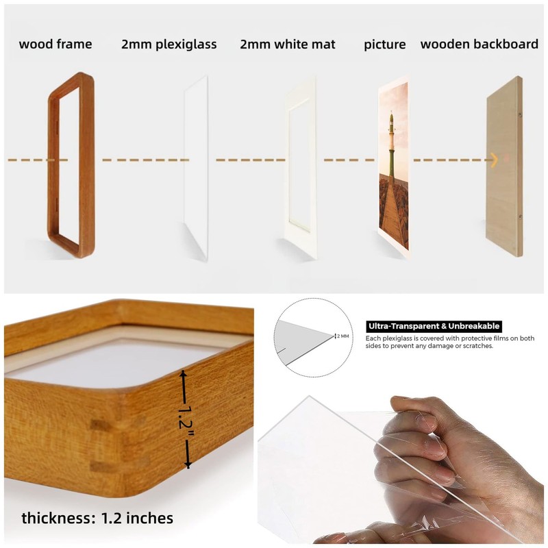 - Protective and Shatterproof: The frame includes a 2mm beveled white mat, 2mm shatterproof plexiglass front, and an easy-open wood backboard, ensuring your photos/cherished memories/artwork/print are safely displayed.