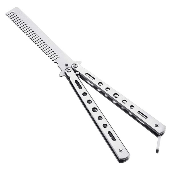 ZIBUYU® Butterfly Comb Professional Training Comb Stainless Steel Folding Practice Comb Unsharpened Blade Stylish Comb Saloon Tool for Beginners Training - Silver