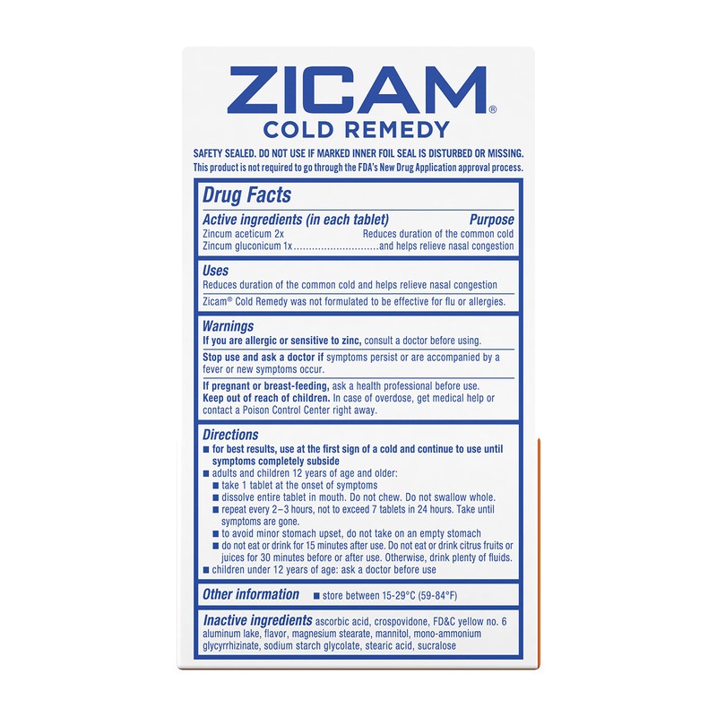 - GREAT TASTING: Getting better tastes better with Zicam Cold Remedy. These delicious quick-dissolve tablets melt in your mouth and are great for on-the-go; They're also non-drowsy and non-habit forming.