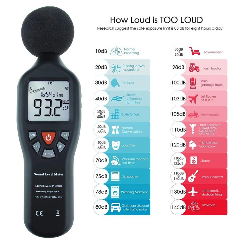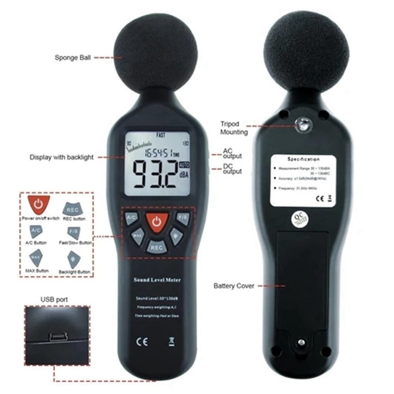 - [Exquisite structure, high accuracy] Wide measurement range of 30-130dB decibels, accuracy of +/-1.5dB, and resolution of 0.1dBA.