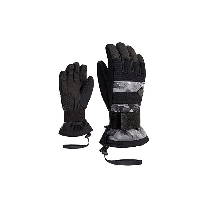 Ziener Children's MANU Snowboard Gloves / Winter Sports | Waterproof, Breathable, Protector, Grey Mountain Print, M