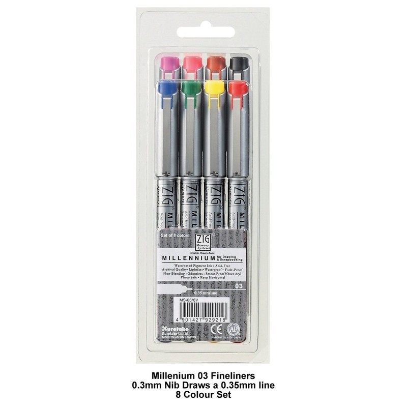 ZIG Millennium Fineliner Drawing Pen Sets - 03 (0.35mm) 8 Pen Set