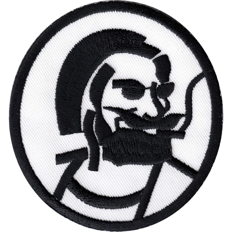Zig Zag Man - Black Design and Border on White Background - Embroidered Iron On Or Sew On Patch