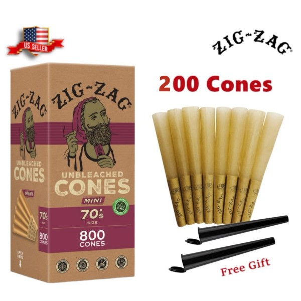 Zig-Zag® Unbleached Paper Cones 70mm Minis Size 200 Pack & 2 Tubes US Shipping