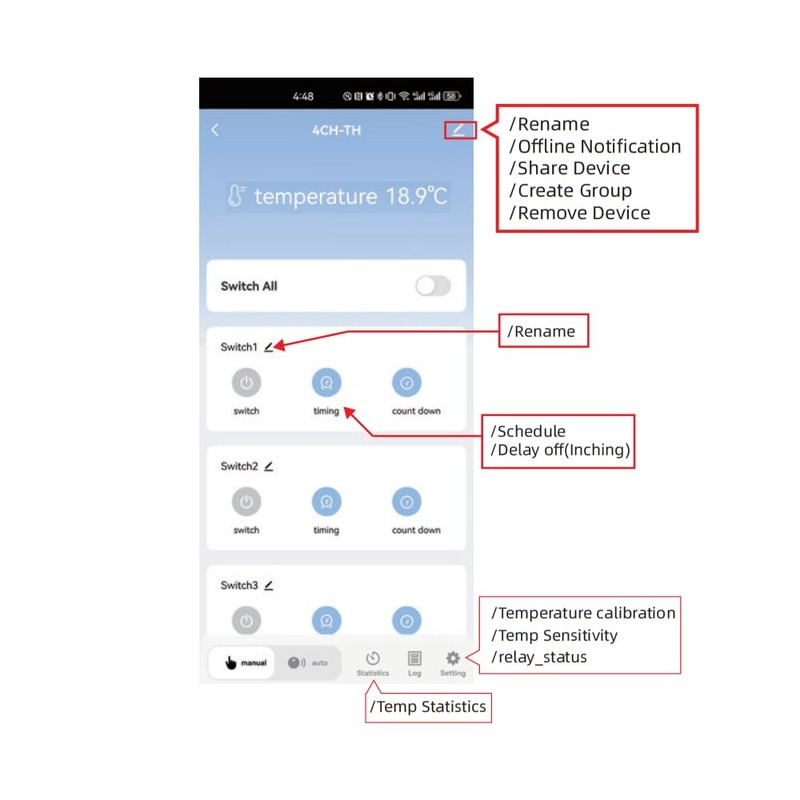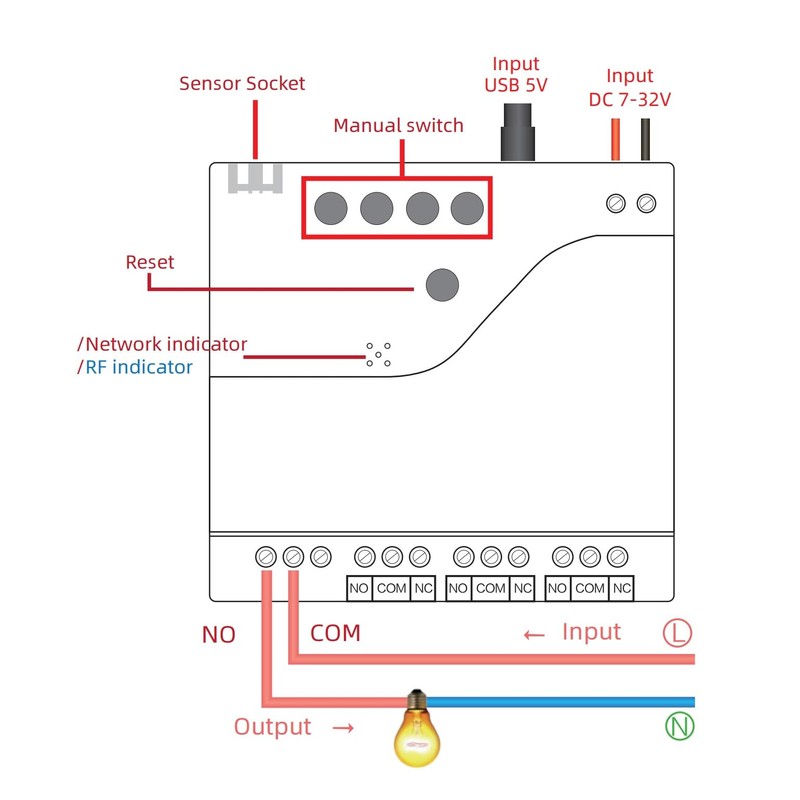 Zigbee 4 Channel Temperature Monitor Controller, DC7-32V or USB 5V Tuya app Remote Dry Contact Smart Relay Switch with DS18B20 Sensor Probe (DC 7-32V)
