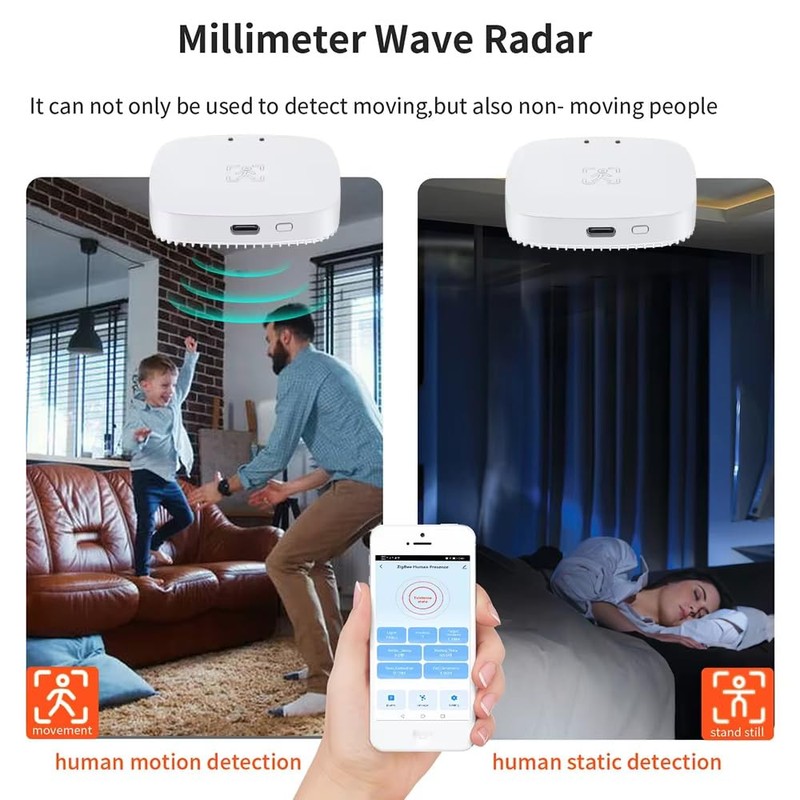 - Advanced Detection: 24G Millimeter Wave Radar technology detects both micro-movements like breathing and macro-movements, with detection range from 0.3m to 9m (default 6m)