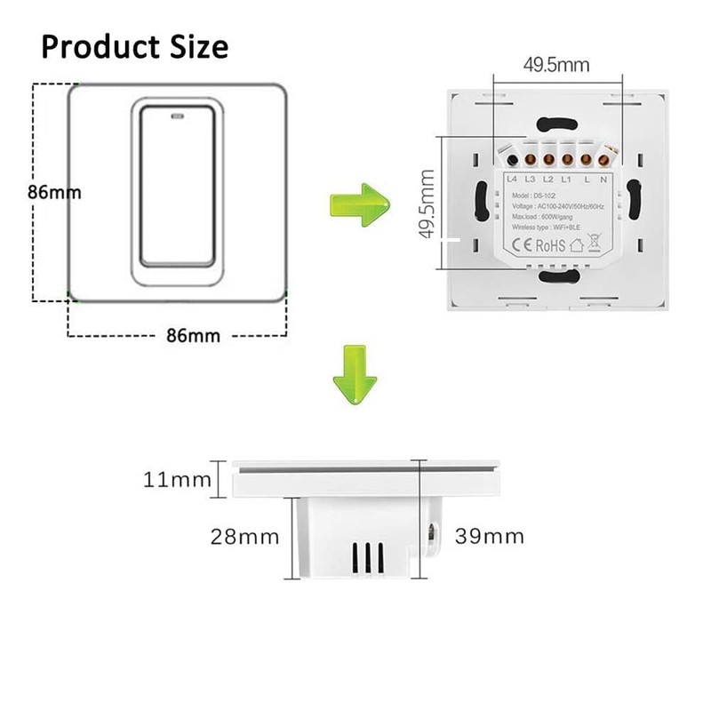 - No Neutral Wire Needed – Perfect for older EU homes. This switch installs easily with live wire only – no capacitor or neutral required.