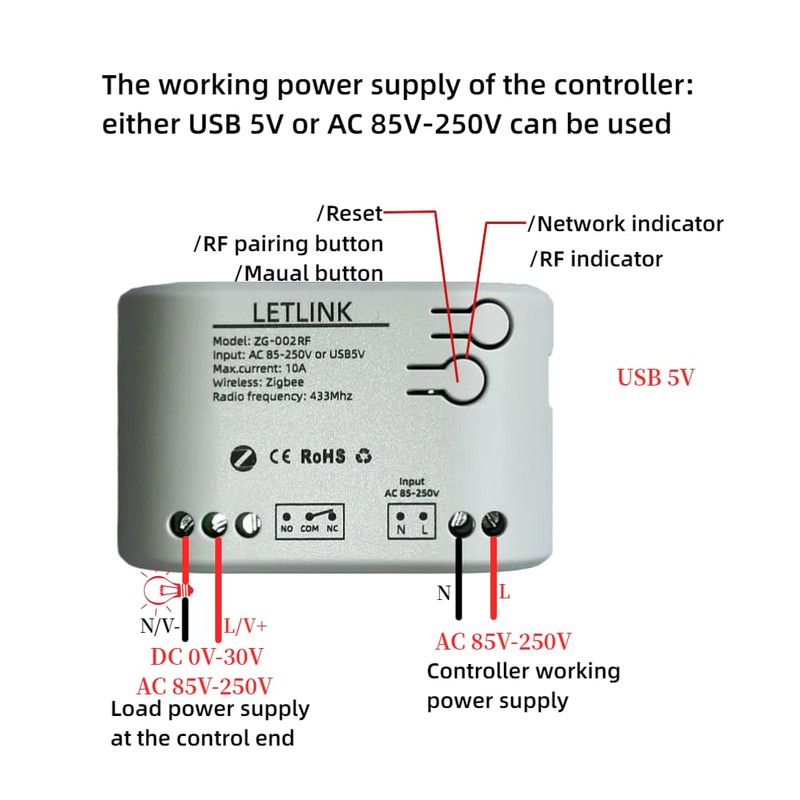 Zigbee1 Channel USB 5V Or AC 85-250V Smart Switch,Adjustable Selflock and Momentary Working Mode,Works with Smart Life/Tuya Gateway