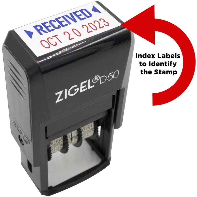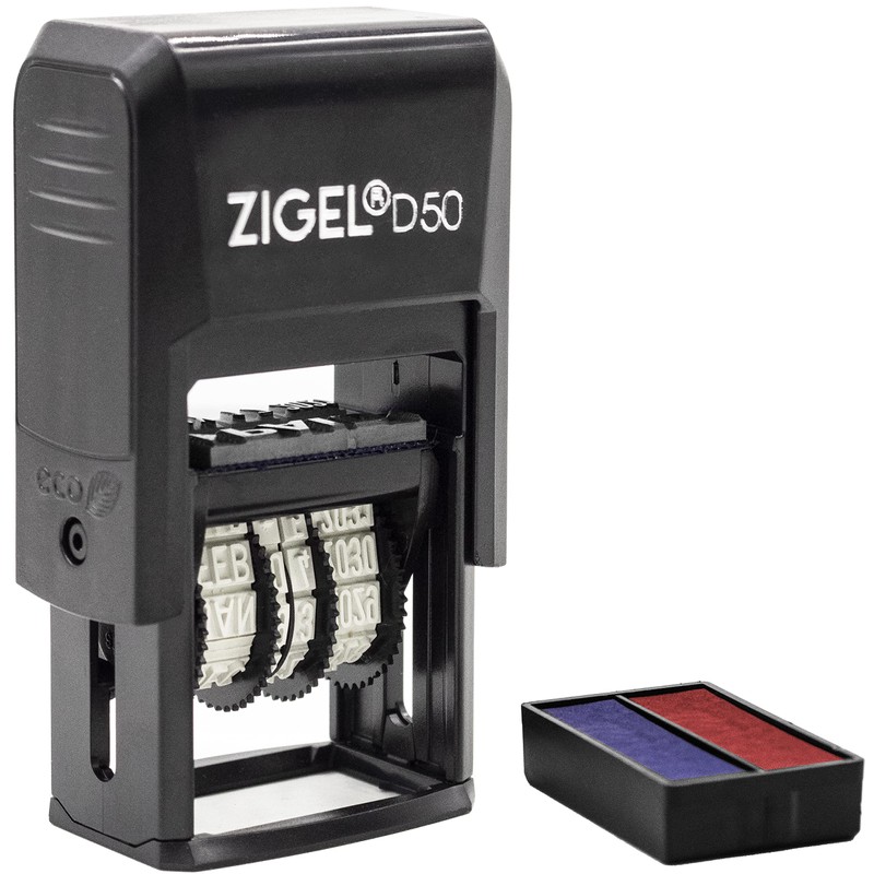 ZIGEL D50 Date Stamp with Entered - Self Inking Date Stamp - Blue/Red