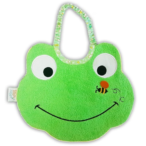 • Bib with a frog design. The bib is made from high quality, 100% cotton terry cloth and is lined with fabric.