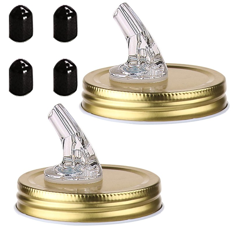 ziHenryDa Mason jar pour spout. Free Flow Mason Jar Pour Spout, Mason Jar Regular Spout Dispenser For Any Liquid. Leakproof, Gold (2-Pack + 2 Black Lids)