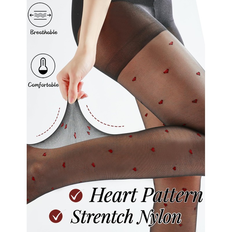 • 【Red Heart Patterned】:These lightweight and breathable sheer tights feature an alluring Red Heart pattern that adds a touch of romance and femininity to any outfit.