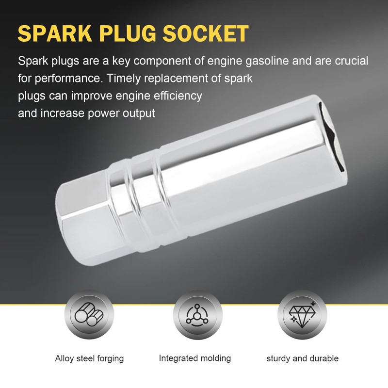 - FUNCTION: Spark plug socket set is an essential tool for installing and removing engine spark plugs, which is vital to the performance of the engine.Timely replacement of spark plugs can improve engine efficiency, increase power output and improve safe driving.