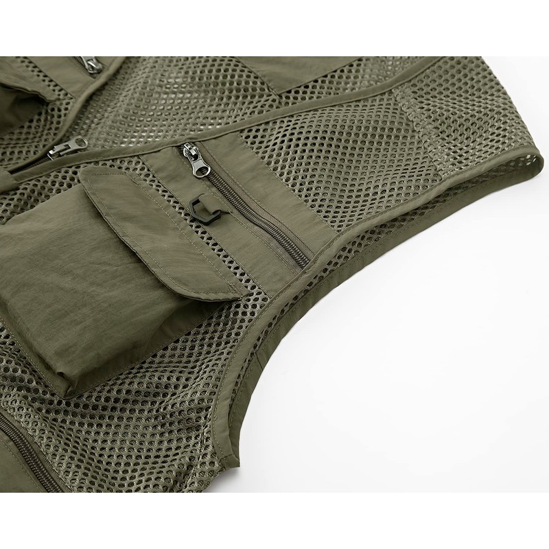 Ziker Men's Mesh Breathable Openwork Camouflage Journalist Photographer Fishing Vest Waistcoat Jacket Coat (US, Alpha, Large, Regular, Regular, Light Khaki)