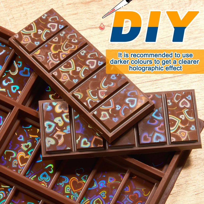 - Holographic Design: the holographic pattern adopts optical principles; As the finished chocolate melts, the holographic pattern on the surface will fade away; Please save it carefully and pay attention before placing an order; Our chocolate molds silicone boasts a suitable design, including heart patterns, that leaves an attractive holographic pattern on your chocolates; Craft visually shiny chocolates that will not only taste well but look delicate too