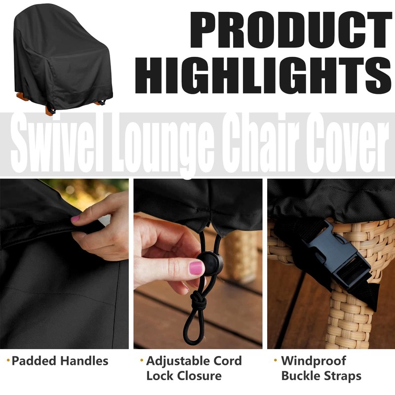- Long-lasting Protection Crafted from 480D heavy-duty Oxford cloth, our outdoor swivel chair cover is designed to withstand rain, sun, and snow. Whether it’s blazing sun or torrential downpours, rocking chair cover provides comprehensive protection for your chair, ensuring your investment is well cared for