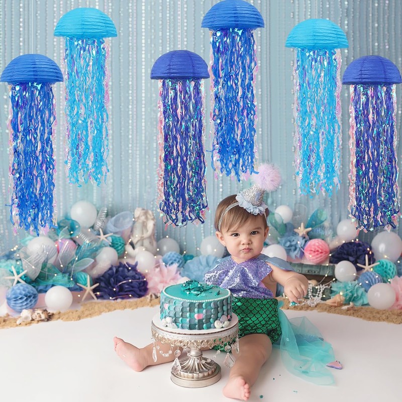 This jelly fish decoration paper lantern is a great the the little mermaid birthday decorations that can perfectly create an under the sea party decorations atmosphere. The magic of swimming under the sea and frolicking with beautiful jellyfish will be felt by all who attend the Mermaid Party.