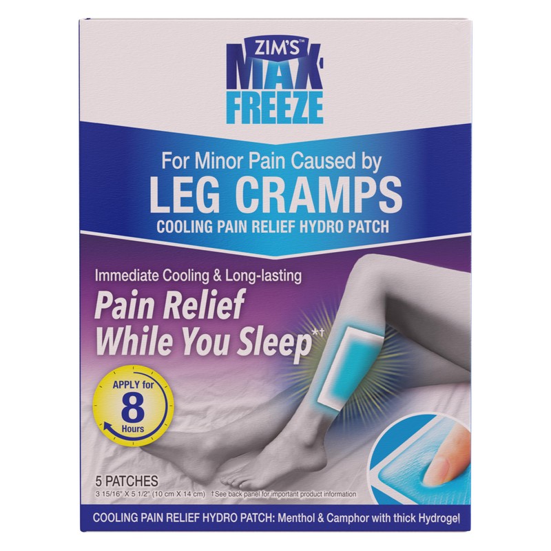 Experience soothing relief from minor leg cramp pain with Zim's Max-Freeze Leg Cramps Patch. Infused with a powerful combination of 5% menthol and 5% camphor, each patch delivers an immediate cooling effect and targeted, penetrating pain relief. The advanced hydrogel technology ensures targeted pain relief with mess-free application and maximum comfort, allowing you to wear the patch overnight for up to 8 hours. Whether you're seeking relief from minor leg cramp pain or post-cramp soreness, Zim's Max-Freeze Leg Cramps Patch offers a convenient and effective solution for long-lasting relief.