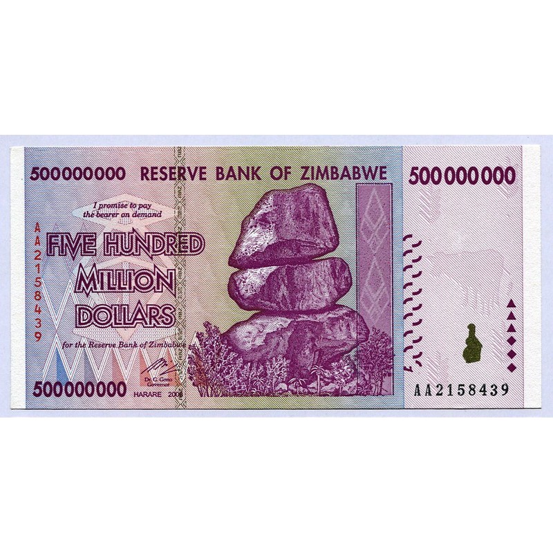 Zimbabwe Pick No. 82 2008 500 Million Dollars (Banknotes for collectors)