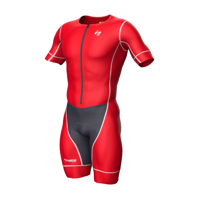 Zimco Triathlon Tri Suit - Men's Classic Short Sleeve Skinsuit Trisuit Racesuit Triathlon Aero Suit Swim Bike Run, Red, XX-Large