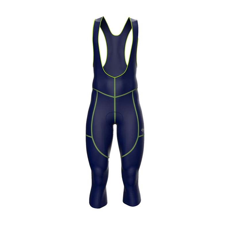 Zimco Winter Cycling Bib Tight Thermal 3/4 Bib Pants Bike Cycle Knickers Padded (XL) Navy, Green Seams