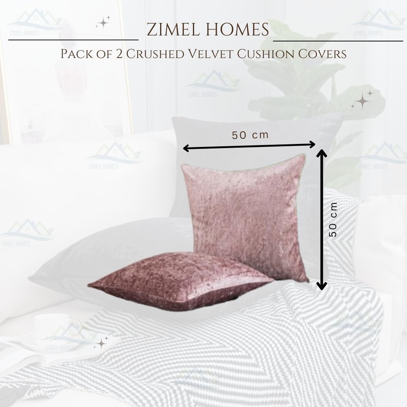 ZIMEL HOMES Pack of 2 Crushed Velvet Cushion Covers 43 cm, 50 cm, 55 cm, 60 cm Soft Square Cushion Covers for Sofa Bed Couch Pillow Case