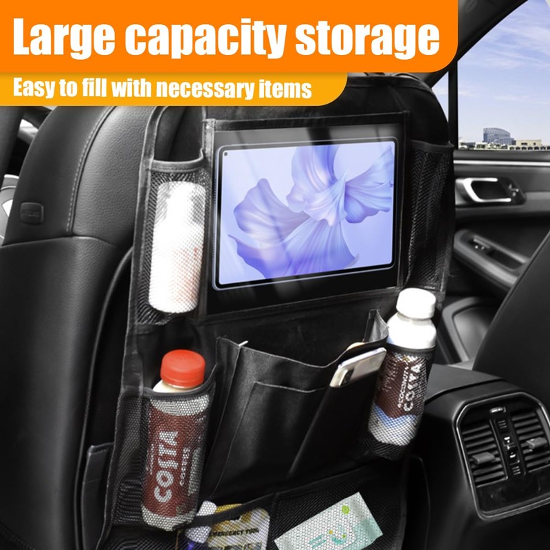 - 【High-Quality Materials】: The car back seat organizer is carefully crafted from sturdy and thick Oxford material, is not only wear-resistant and scratch-resistant, capable of withstanding the daily kicks and punches of children without being easily damaged, but also has excellent waterproof performance, and it has a long service life. Furthermore, the transparent pocket is specifically designed for electronic devices, making it convenient to check the device's status.
