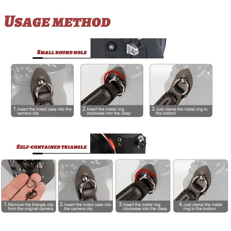 ◼ Designed for cameras with integrated triangle buckles or small round holes, ensuring secure attachment.