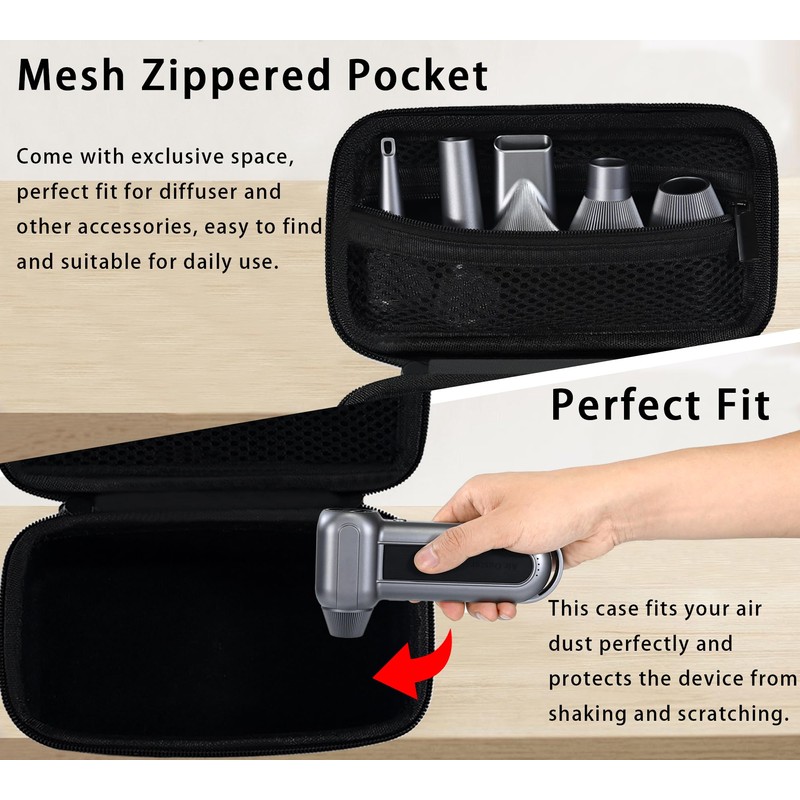• Comprehensive protection: Air duster storage box is made of high-quality hard EVA material and fluffy fabric lining, which can resist collisions, scratches, or other impacts, providing full protection for your items; compressed air duster case is also waterproof, shockproof, dustproof, and anti-static. The built-in mesh pocket provides ample space for WOLFBOX MF100 Electric Air Duster accessories.