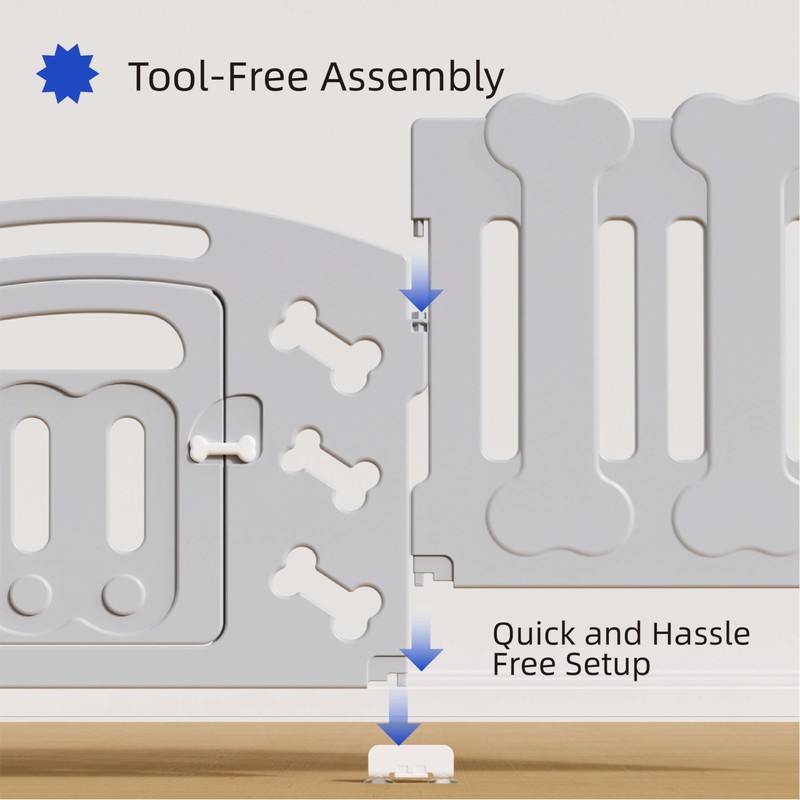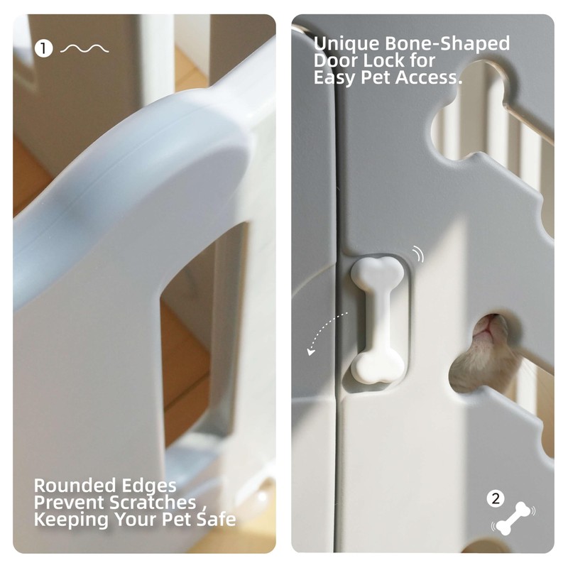 - Rounded Edges for Pet Safety: Featuring rounded edges and a bone-shaped lock, this dog playpen prevents scratches and injuries, ensuring a safe space for your dog to play, rest, or train.