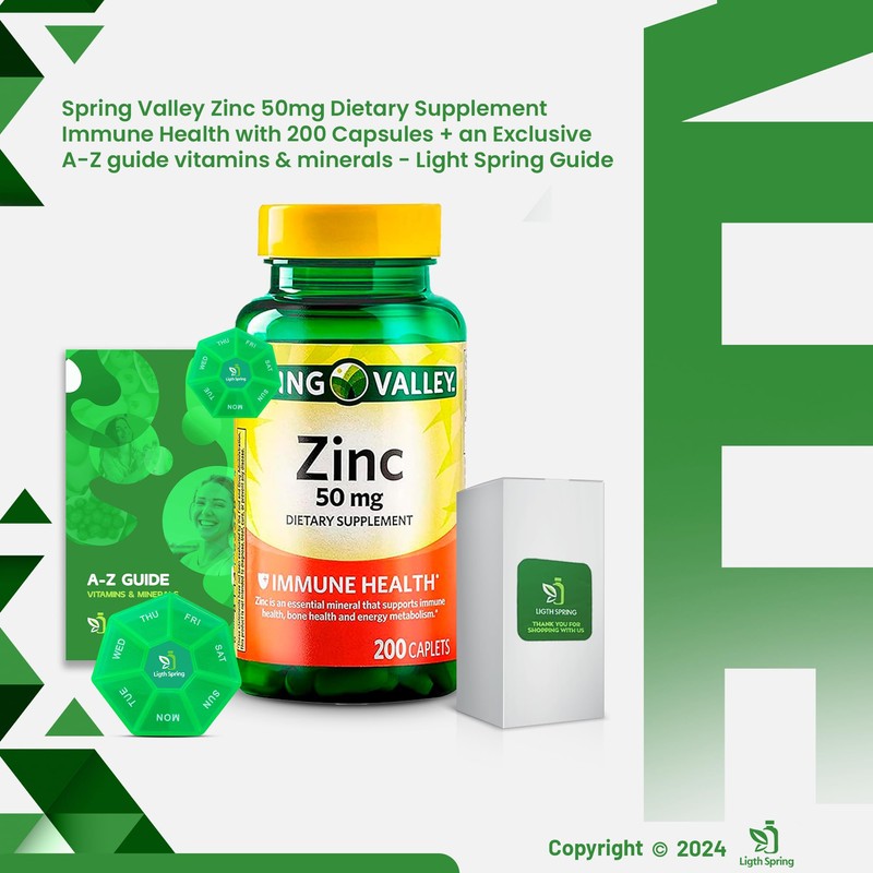 Zinc Supplement 50mg, 200 Count, Immune Support with Better Ligth&Spring Guide + Weekly Pill Organizer (3 Items)