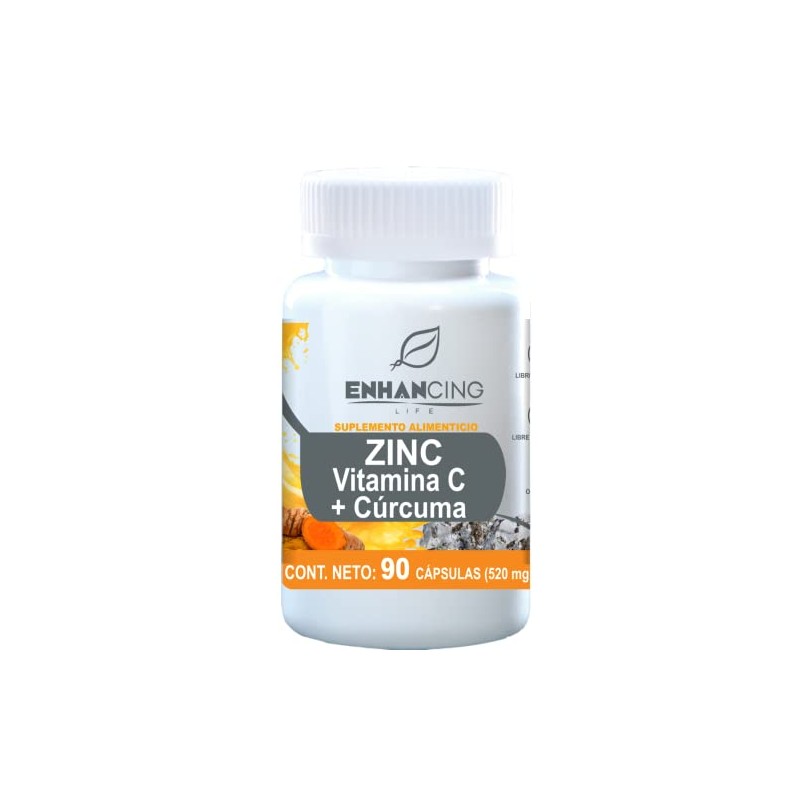 Este SUPLEMENTO ALIMENTICIO 💊 hecho a base de ZINC 👩, VITAMINA C y Cúrcuma, está diseñado para brindarle a tu cuerpo justo lo que necesita 💪. Viene en una presentación abundante de 90 cápsulas que te rendirá. En ENHANCING LIFE mejoramos la vida desde la naturaleza 🍃 por lo que nuestros suplementos no contienen rellenos artificiales 🙅♀️. Hechos con los más altos estándares de calidad 🔬 y formulados científicamente 🧬 para beneficios duraderos. No lo dudes más y súmate al nuevo paradigma ✨.