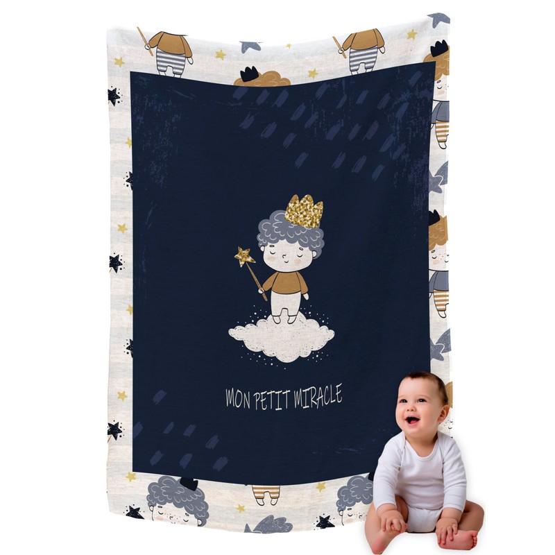 Zinello Design – Extra Soft Microfibre Fleece Baby Blanket 120 x 75 cm with Message of Love – Newborn Blanket for Baby Girl or Boy with Gift Box (My Little Miracle – Boy)