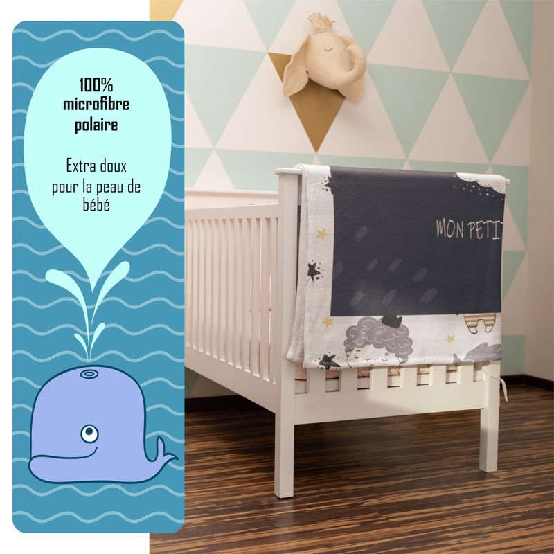 - SUPERIOR VERSATILITY & COMFORT: Our extra soft microfiber fleece baby blanket provides enveloping warmth, perfect for those cool days walking in a stroller, in the crib at home, or even on a car trip. With a generous size of 120 x 75 cm, it ensures lasting comfort for your child, whether in the child's bed, on the baby's play mat or during naps.