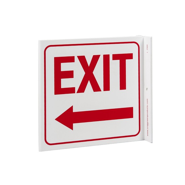ZING Eco Safety L Sign "Exit Left Arrow" protects people and the environment with important safety and health information. Two-sided L design offers a 180-degree view that significantly increases visibility of information. Sign is made of 70 percent post-consumer recycled plastic which makes them a great alternative to regular safety signs that are not eco-friendly. Recycled material is UL Validated for recycled content and supports sustainability initiatives and LEED credits. Includes 2 mounting holes and mounting adhesive tabs. Sign measures 7-inches width by 7-inches height. Made in the USA.