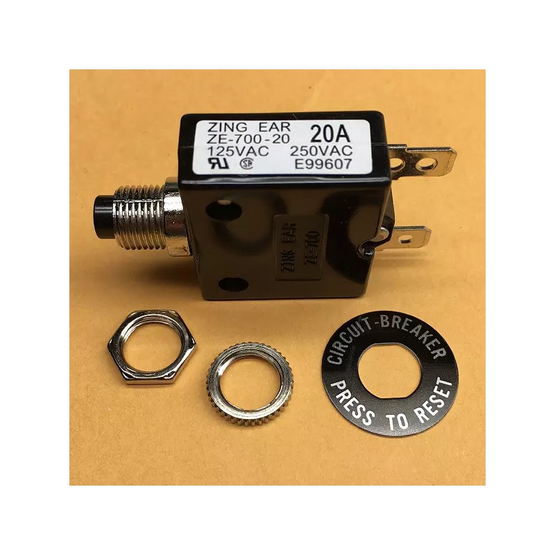 Zing Ear NEW Zing Ear 20 Amp Push Button Thermal Circuit Breaker 12-50VDC 125-250VAC 20A