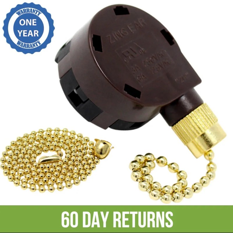 Zing Ear New Zing Ear ZE-268S5 4 Speed 5 Wire Ceiling Fan Pull Chain Switch Replacement
