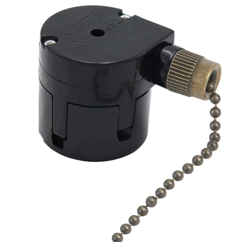 Offering easy installation and operation, this speed fan switch with pull chain provideus control over your ceiling fan's rotation speed for convenient cooling control. This unit features an eight-wire switch for easy adjustment and includes a polished brass pull chain for manual operation. An additional white pull string with brass connector is included to extend the length of the chain.