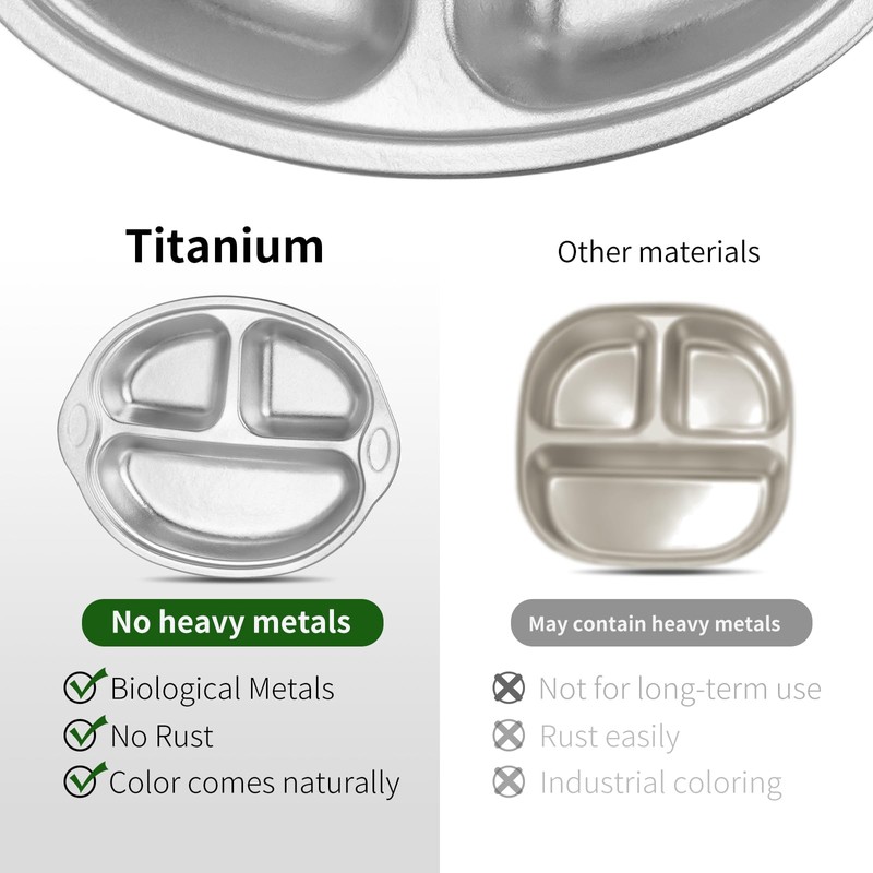 • Healthy ingredients: The dietary portion control tray is made of 99.9% titanium, the world's recognized pro-biological metals, will not precipitate any heavy metals, can be stacked and reusable. No Sharp Edge, safe to use. It can be washed in a dishwasher and is easy to clean. Titanium material is suitable for long-term use.