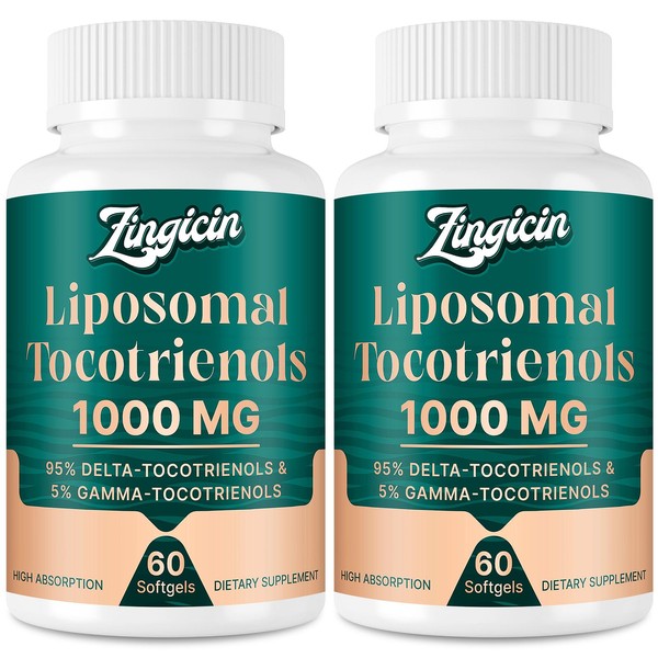Zingicin Vitamin E Tocotrienols - Liposomal Tocotrienols Supplement 1000mg, Highly Absorbable Delta Tocotrienol and Gamma Tocotrienol for Bone Health, and Antioxidant Support, 120 Softgels