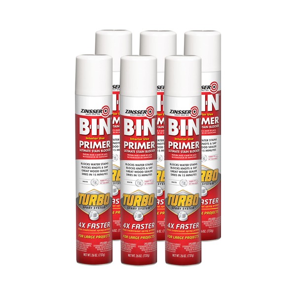 Zinsser 356880-6PK B-I-N Primer Turbo Spray System, 26 oz, White, (Pack of 6)