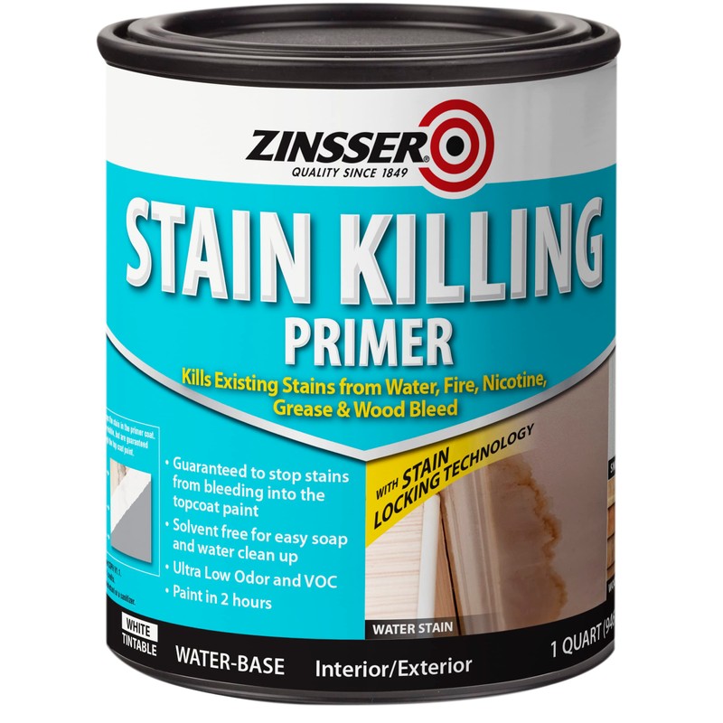 - Stain killing primer stops stains from bleeding into topcoat paint