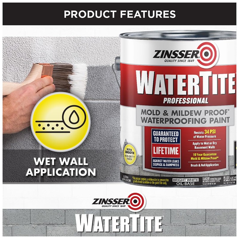 Zinsser 5001-2PK WaterTite Professional Waterproofing Paint, Gallon, White, 2 Pack