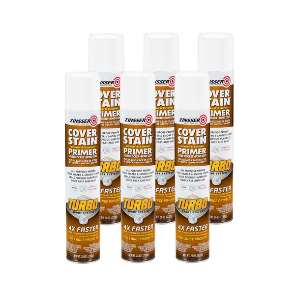Zinsser Cover Stain Turbo Primer Spray, 26 oz, White, (Pack of 6)