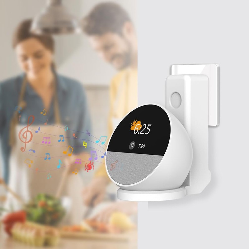 Zinueen Space-saving mount for spot speaker wall mounts with integrated cable arrangement and white stand for Echo Spot mount