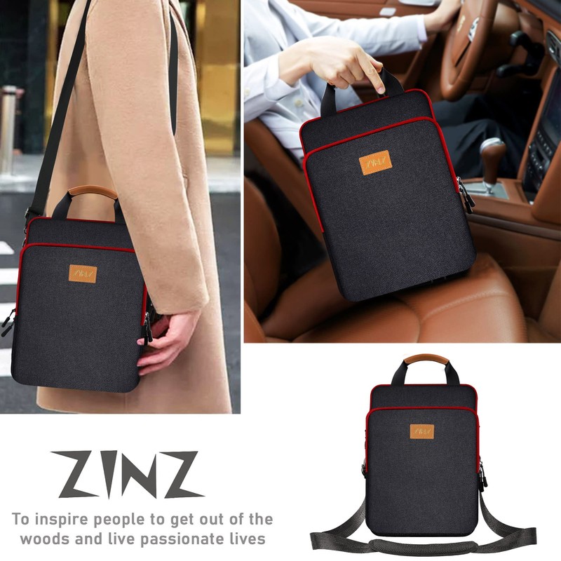 ZINZ 12.9 13 inch Laptop Case Shoulder Bag with Variable Capacity and Strap, Carry Case for Travel with Valuables & Notebook Compartments, Eco-Friendly and Water-Resistant Sleeve,Black&Red