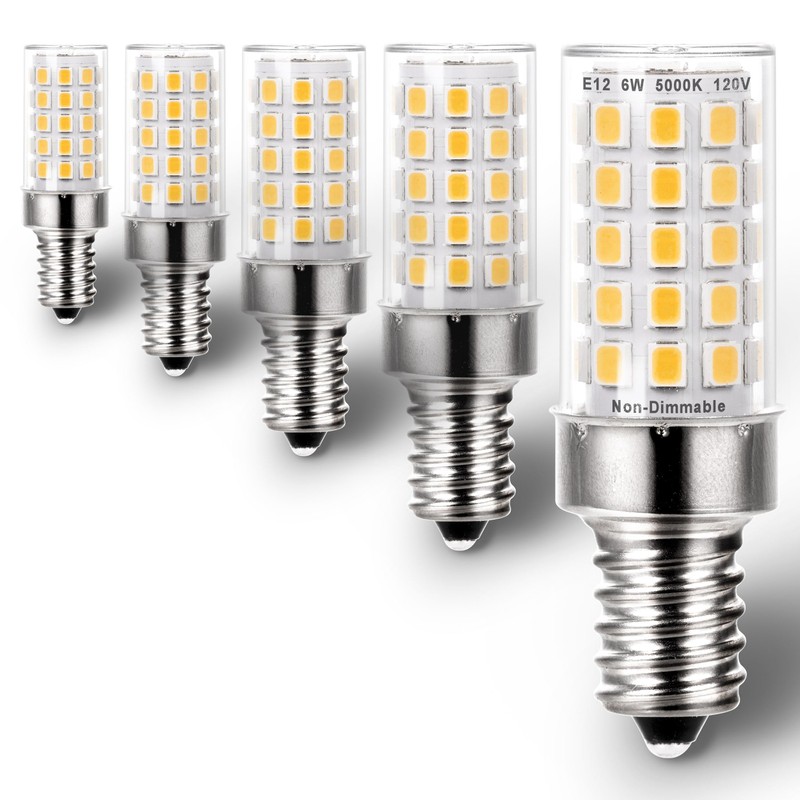 - (Energy-Saving): Replace 50 watt 60 watt e12 halogen bulbs by 6w led, 500 lm, 5000k daylight bright cool cold white, high CRI 82Ra very bright for your chandelier candelabra light