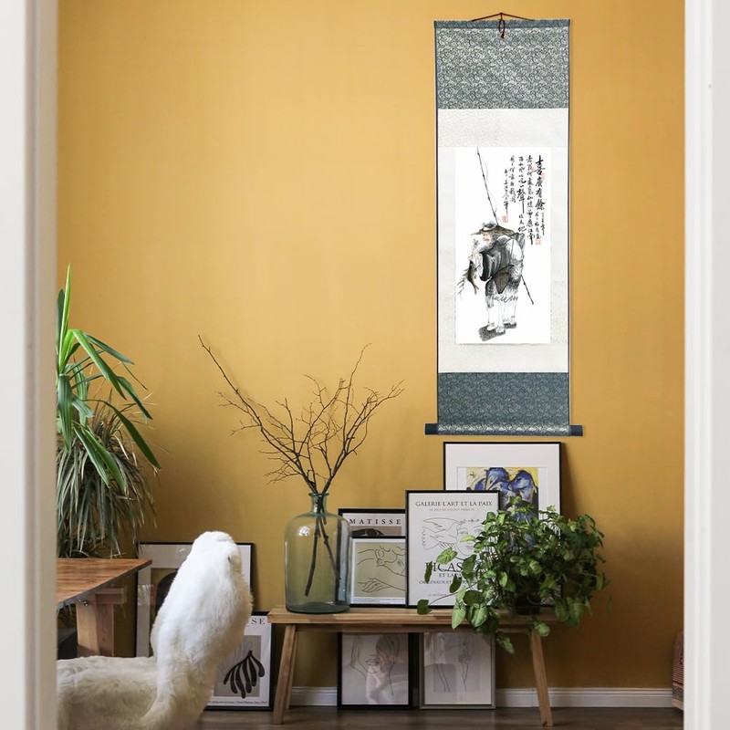 - Exquisite silk mural, fade-resistant, moisture-proof rayon (art silk) with brocade, durable, beautiful pc scroll bar on the bottom and convenient hanging loop on the top. Easy to carry and install, it can be used to decorate bedrooms, living rooms and kitchens.